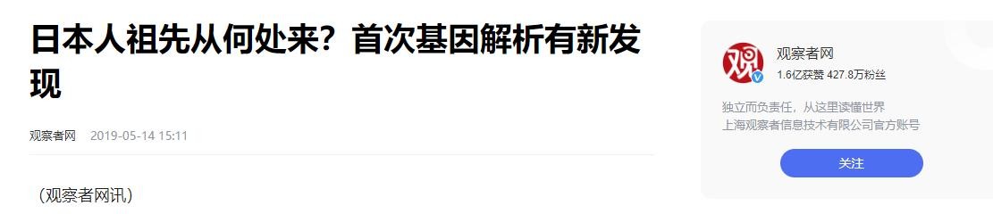 2019-05-14 观察者网 日本人祖先从何处来?首次基因解析有新发现