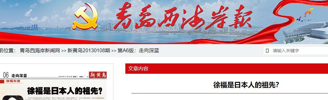 青海西海湾新闻网 新黄岛20130108期 >> 第A6版:走向深蓝 徐福是日本人的祖先?