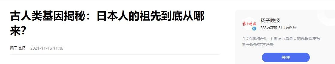 2021-11-16扬子晚报 古人类基因揭秘:日本人的祖先到底从哪来?