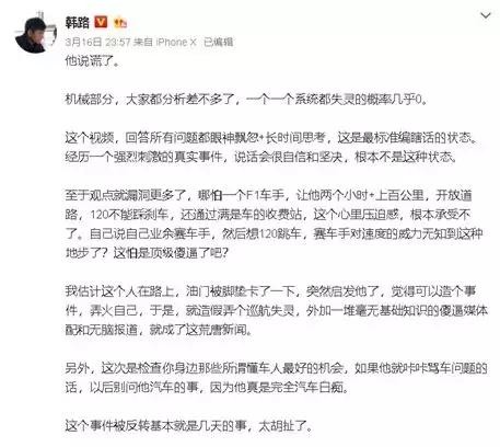 资深车评人、汽车博主韩路也表示,系统都失灵的概率为0。
