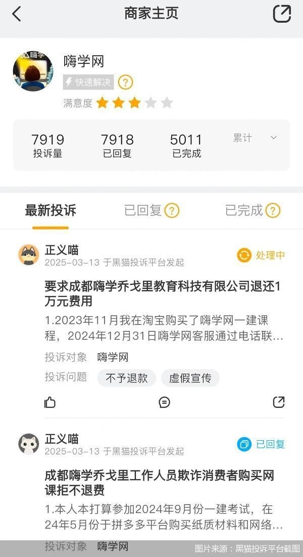 3·15守护消费 | 嗨学网退款追踪:平台介入强制退款,黑猫投诉近8000条