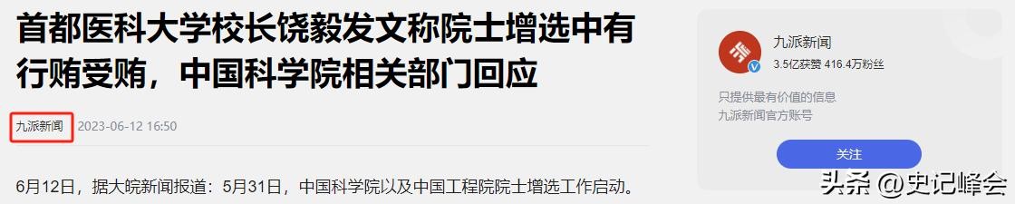 2023-06-12——九派新闻——首都医科大学校长饶毅发文称院士增选中有行贿受贿,中国科学院相关部门回应