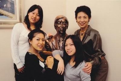 非常难得的一张照片。久子妃和她的三个女儿(承子、典子、絢子)围在已经去世的宪仁亲王铜像旁边。