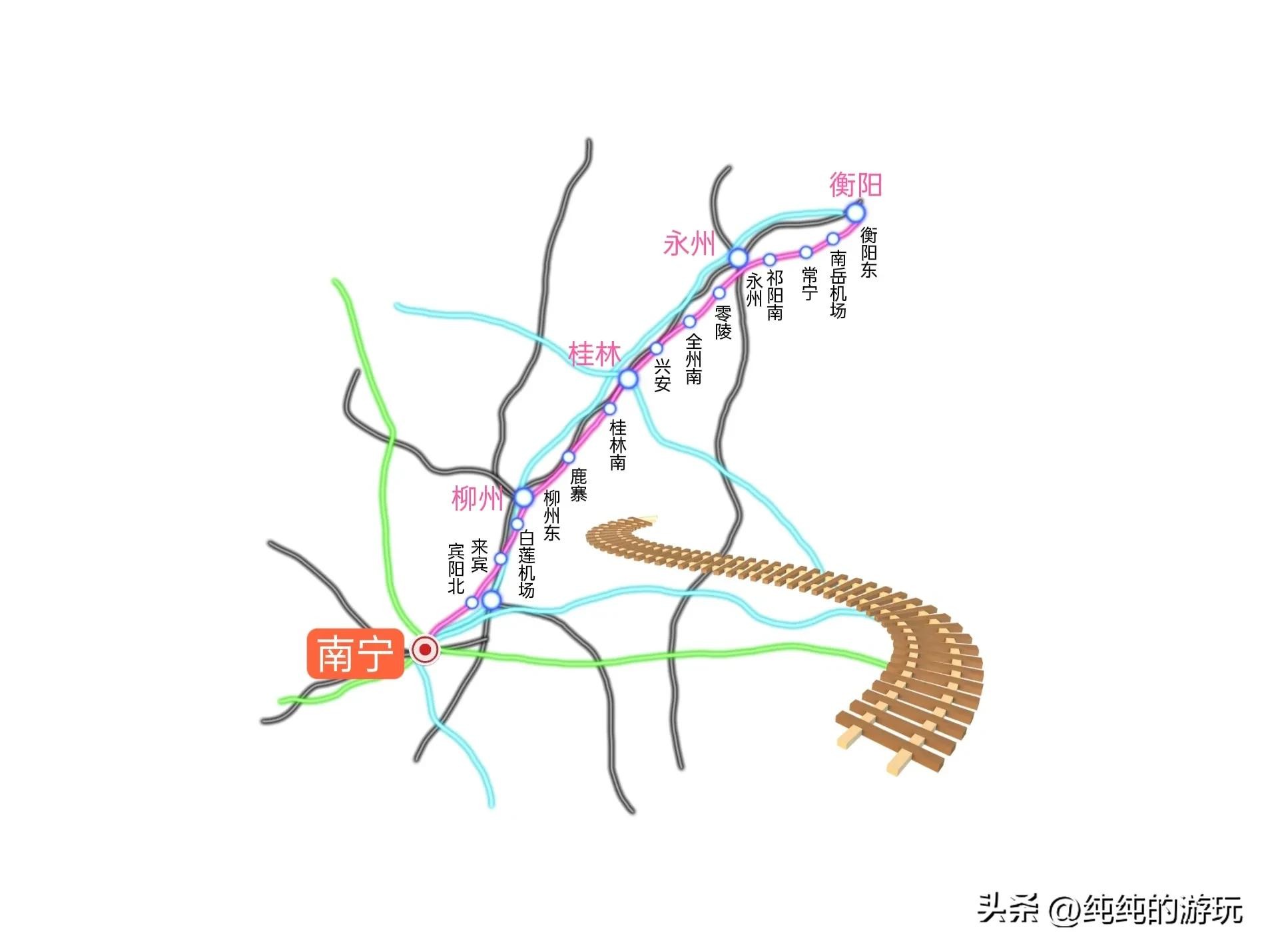 南宁经桂林至衡阳铁路线路图(大概走向 仅供参考)