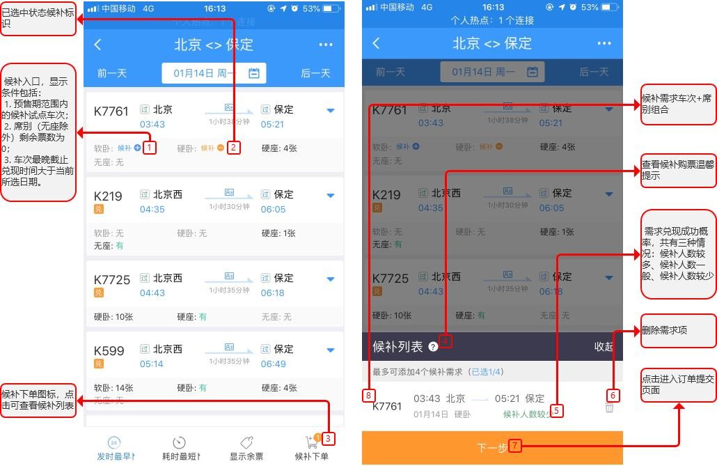 候补车票是一种在火车出发前一段时间内,针对已售完的车票而设置的购票方式。购买候补车票的人称为候补乘客。候补购票的成功率通常取决于以下几个因素:
