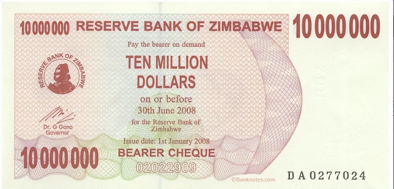 2008年7月,津巴布韦的通胀率达到了231000000%。2009年,津巴布韦央行曾发行100万亿面值的津元纸币,成为世界上“零”数最多的纸币。但这张100万亿津元的纸币,当时仅不过相当于40多美分。津元因此被中国网友戏称为“全球唯一能与天地银行一较高下的货币”。