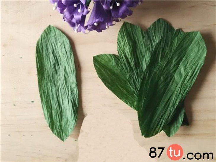 叶子的部分就很简单,剪成图片中的形状,一片叶子由两片组成,一支风信子,做3片叶子。