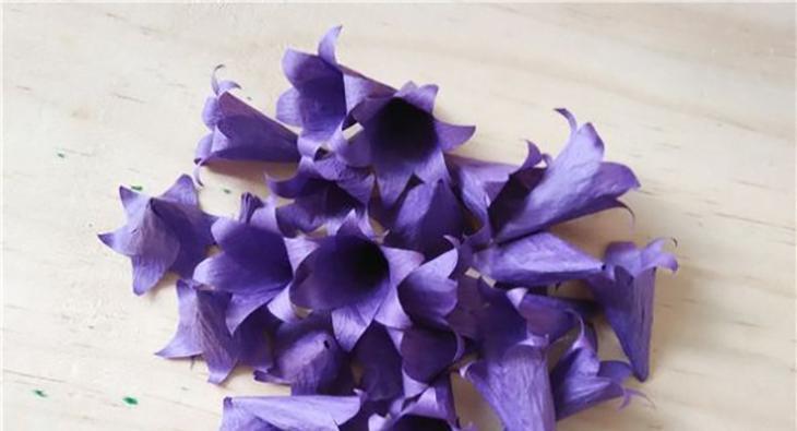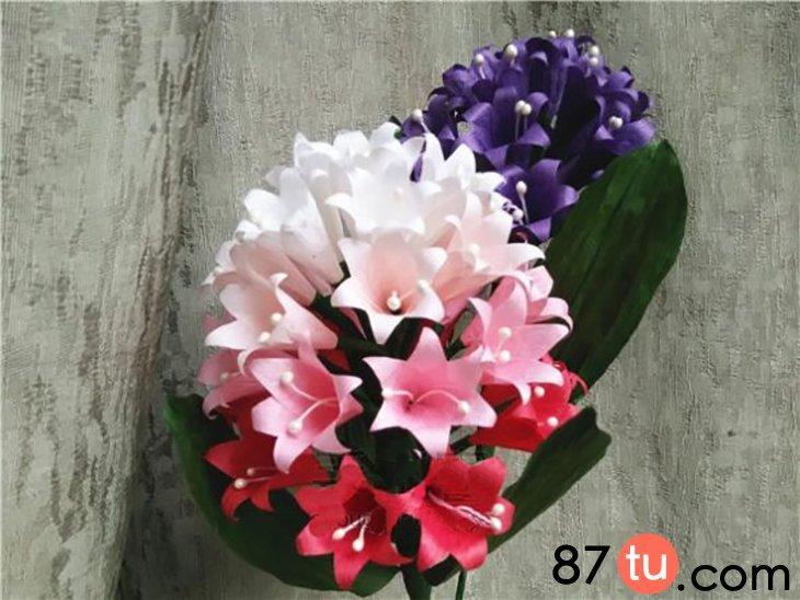 这款风信子和很多人知道的风信子做法有所不同,以前我们就是把一张制作好的花瓣用铁丝一瓣一瓣串起来就好了,今天做的这款风信子教程则是把一片片花瓣组合成一朵,再由这一朵朵组合成一支风信子,这个做法更接近真实的风信子。