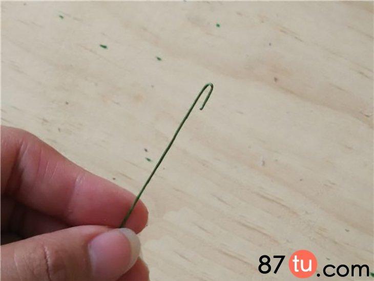 将26号绿铁丝剪成一段段七八厘米长,如图将铁丝的一段弯下来一段,主要是用来钩住花蕊的。