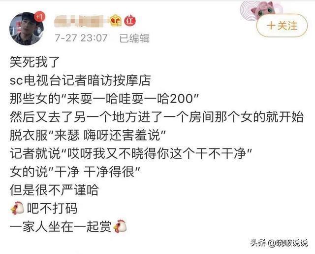 7月29日上午,四川省的一家电视台暗访按摩店的节目火了。