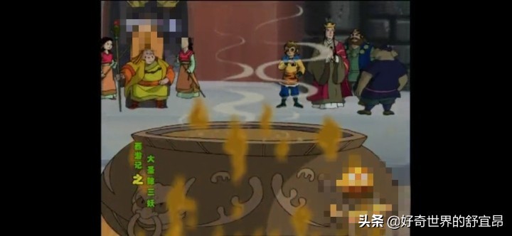 针对这三个事件,我简单的分析一下大家会产生曼德拉效应的原因。第一个西游记,首先我先去确认了一下,确实没有下油锅的情节。人们之所以会有这个情节的印象,可能是因为另一部西游记,《94版西游记动画》。这部动画片我当年也特别爱看,是在中央台播放的,看过的人应该不在少数。我特地去重温了一下,真相大白了。在第二十八集《大圣除三妖》8分30秒,羊力大仙提出了油锅挑战。所以是人们把《94版西游记动画》的剧情代入了《86版西游记》中。虽然一个是动画片,一个是真人剧。