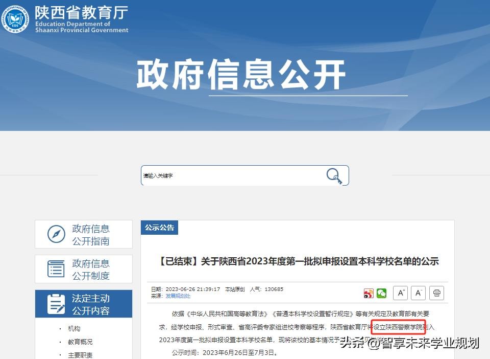 2023年6月26日,陕西省教育厅发布《关于陕西省2023年度第一批拟申报设置本科学校名单的公示》,将设立陕西警察学院列入拟申报设置本科学校名单。据悉,新设普通本科学校名称为陕西警察学院,建校基础为陕西警官职业学院,学生规模5147人。