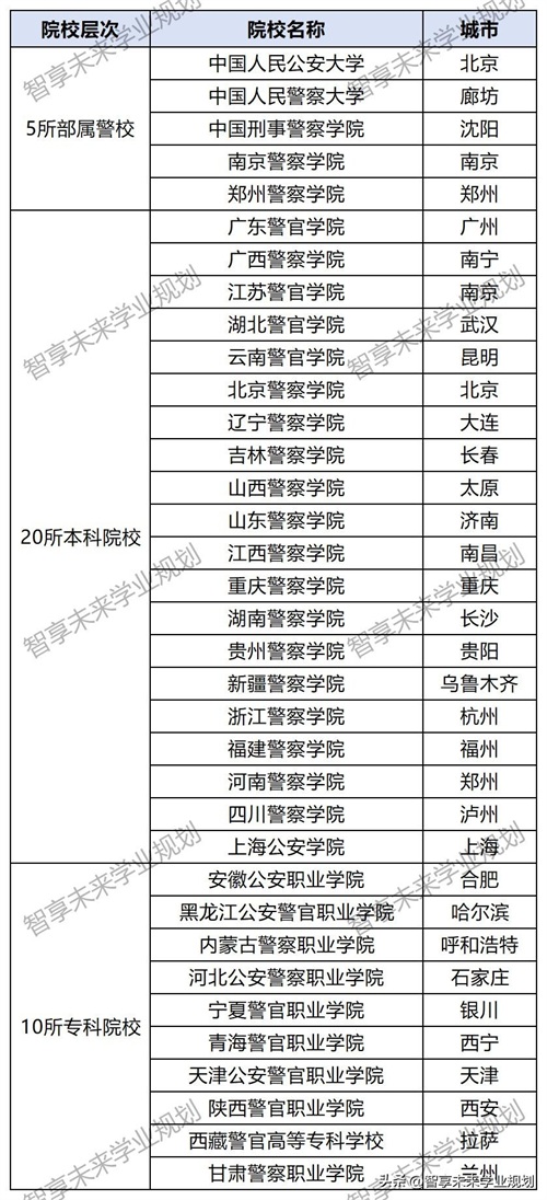 此外,再给大家补充一个知识:有别于军校的分配制,公安院校并不是所有毕业生都能当警察。目前开设公安专业的院校有公安类院校和政法类院校,前者如中国人民公安大学、郑州警察学院等 ,后者如中南财经政法大学和西北政法大学。