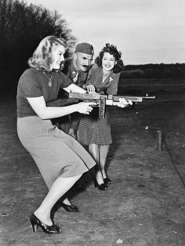十一、上世纪五十年代,一位美国老兵在教两位美女使用冲锋枪,而这把冲锋枪就是在黑帮电影里很火的汤姆逊。
