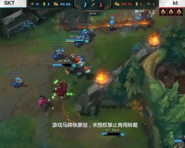 SKT和KT的比赛最终人头比相差非常悬殊,虽然双方在中期一直都是55开的经济,没有拉开太多。但由于Faker基兰这个大招后期CD时间极短,因此保护下了很多次队友和自己的性命,让KT的狮子狗+泰隆双突进,杰斯+炸弹人高爆发阵容没有能够打出优势。