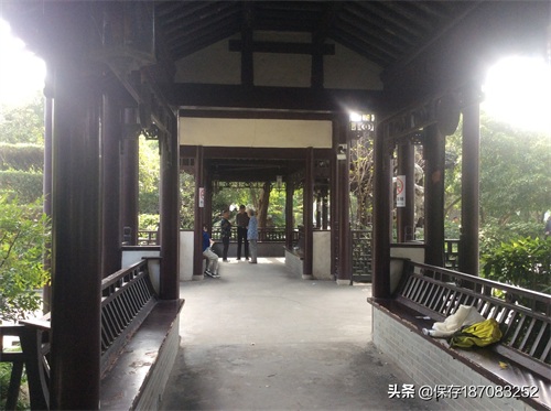 还有九曲长廊,由三个亭子相接,亭顶塑龙头称谓“多角龙头亭”。