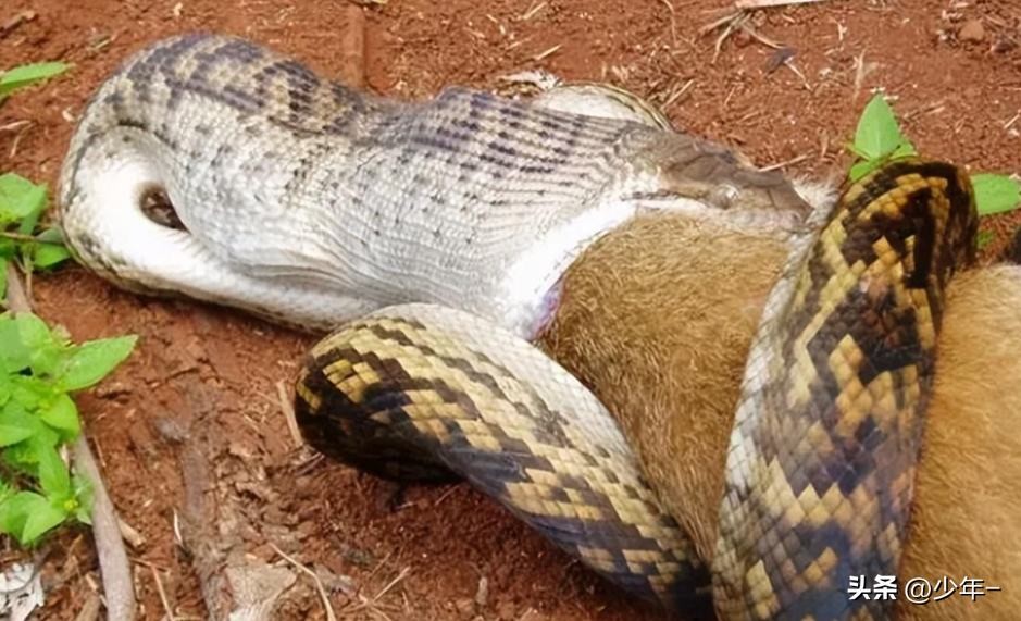 39、正在吞食猎物的巨蟒,他们的嘴巴可以张很大