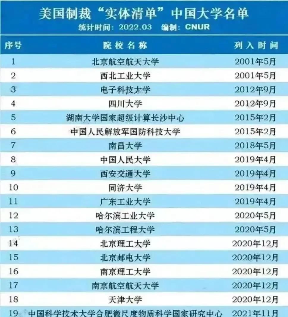 作为漂亮国那种德行,公布的制裁实体清单中每次都有哈工大、西工大和各种科防大学,作为国内的顶尖学府,享受国家各种政策福利待遇,而且每次都是各地方的尖子生的高等学府,就这么不受美国待见嘛?漂亮国你是看不起谁呢?