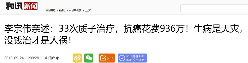 和讯新闻:李宗伟亲述:33次质子治疗,抗癌花费936万!生病是天灾,没钱治才是人祸!--2019-09-24