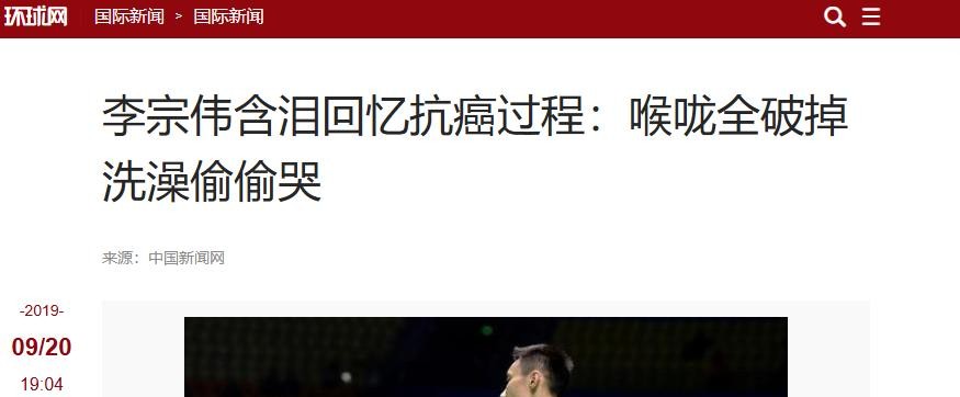 环球网:李宗伟含泪回忆抗癌过程:喉咙全破掉 洗澡偷偷哭--2019-09-20