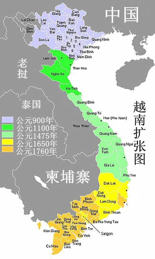 1623年,柬埔寨国王哲塔被迫和越南公主结婚,并将其立为王后。越南开始借王后的名义干涉柬埔寨的内政,并侵占了富饶的湄公河三角洲地区。从此之后,柬埔寨沦为越南和暹罗交锋的战场,最终越南于1833年打败暹罗,获得了对柬埔寨的控制权。由此可见,越南在历史上就觊觎老挝和柬埔寨,并实现了对老挝部分地区,和柬埔寨全部地区的控制。