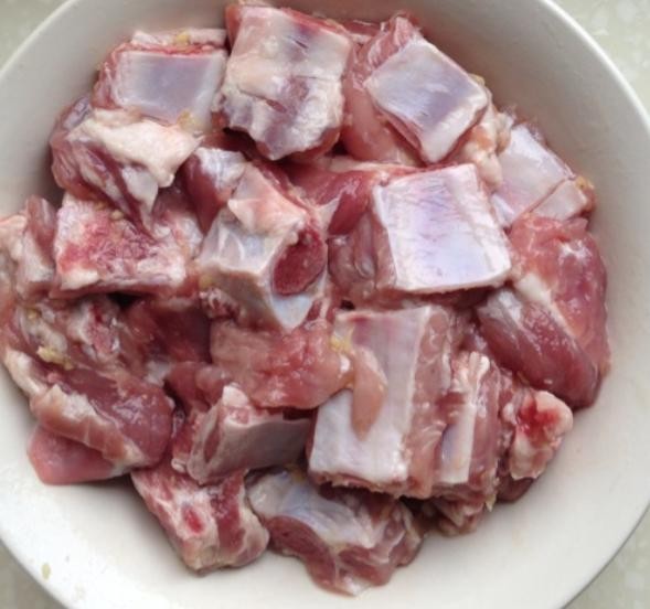 步骤一:将排骨用清水洗干净,锅中放入清水烧开,将其倒入锅中煮半个小时左右,捞出放入碗中,将料酒,生抽分别一勺,老抽半勺,两勺香醋放入碗中进行腌制20分钟左右。