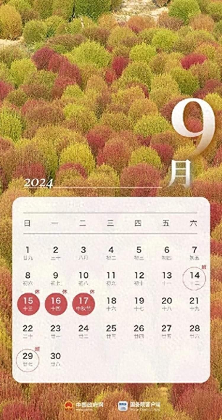 中秋节即将来临,假期安排在9月15日至17日。但别忘了9月14日是需要调休的工作日。小编分析,去年我就因为忘记调休,结果在中秋节那天还在办公室加班,真是一个惨痛的教训。