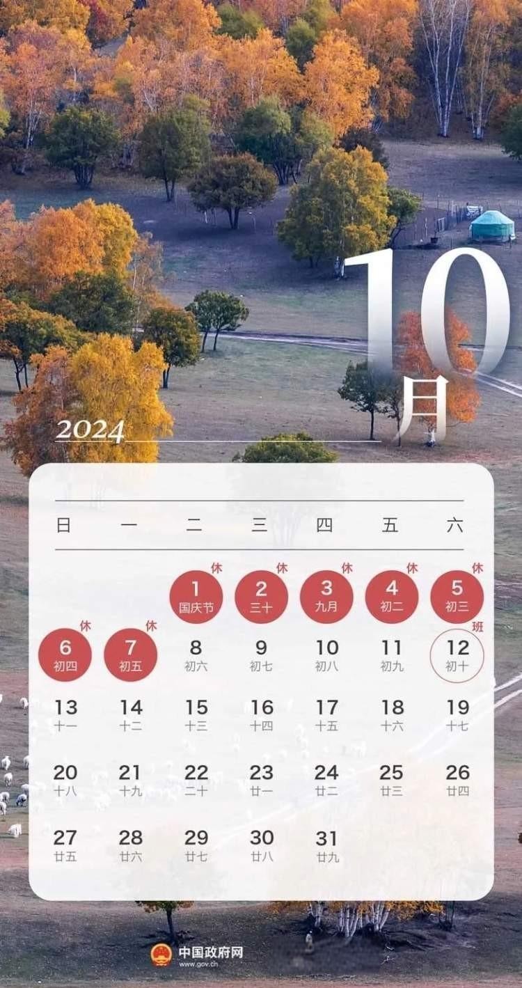 紧接着,国庆长假也将到来,从10月1日到7日。学生们可以好好享受与家人团聚的时光。但别忘了9月29日和10月12日需要正常上课或上班。在笔者看来,我有个同事,去年因为没有提前规划,结果国庆期间的旅行计划泡汤了。