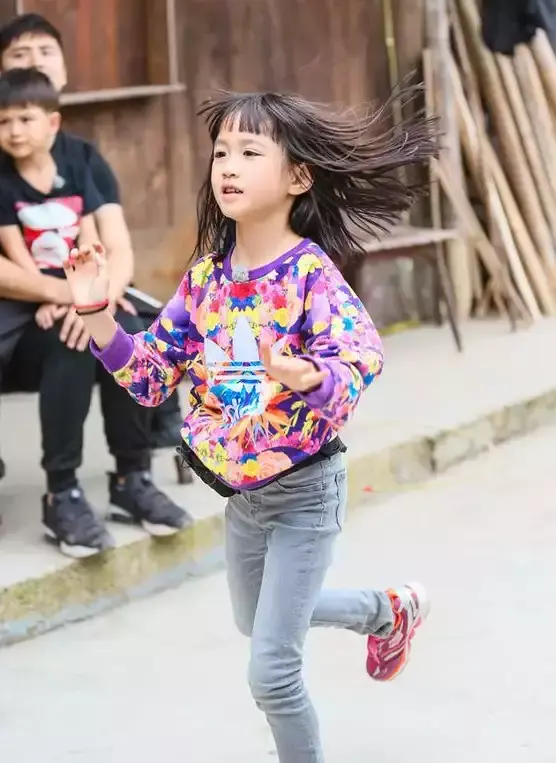 在第一期中去帮爸爸买秋裤,自己却不好意思说爸爸,很小声的说出,可以看出她的羞涩。慢慢的这个小姑娘和爸爸越来越融洽,说着一口不标准的普通话,正直善良。
