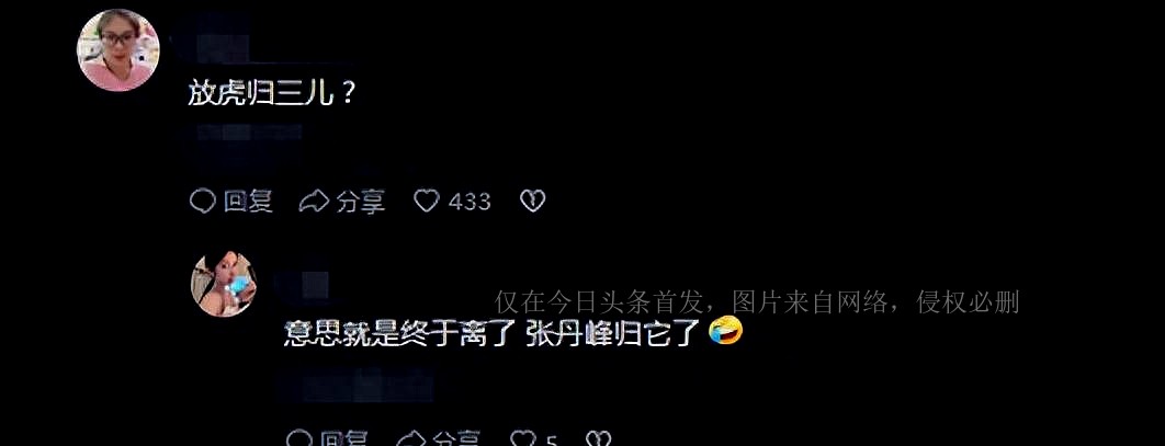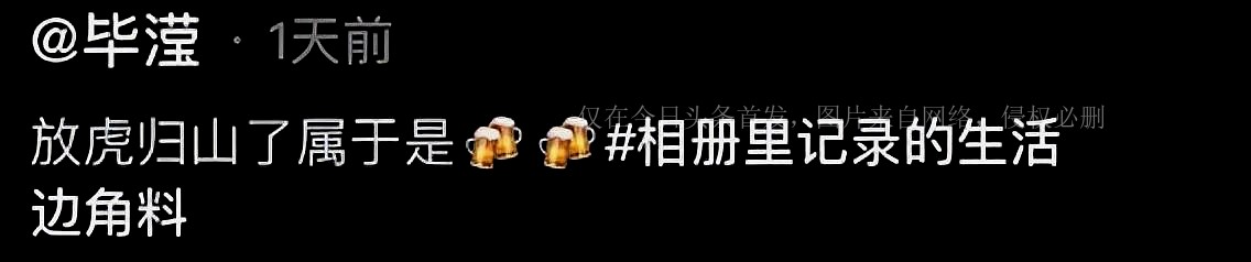 然而,毕滢的行为也引发了一些质疑。最近,她非常活跃,并发布了一个含深意的文案:“放虎归山了”。网友们纷纷猜测,她是否在传达这样的信息:“张丹峰终于离婚了,这个男人归我了。” 这种言下之意似乎在宣布她的成功上位。