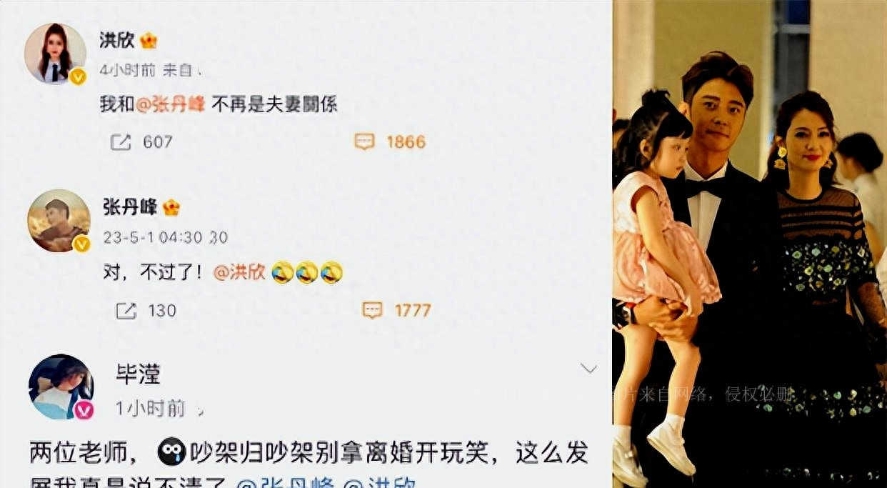 在风波中,当洪欣发布动态宣布与张丹峰结束夫妻关系时,绕绕张丹峰的争议似乎达到了高潮。然而,毕滢也加入了这场风波,这确实令人感到惊讶。这个情况在明星离婚中并不常见,让人不禁思考她的动机。