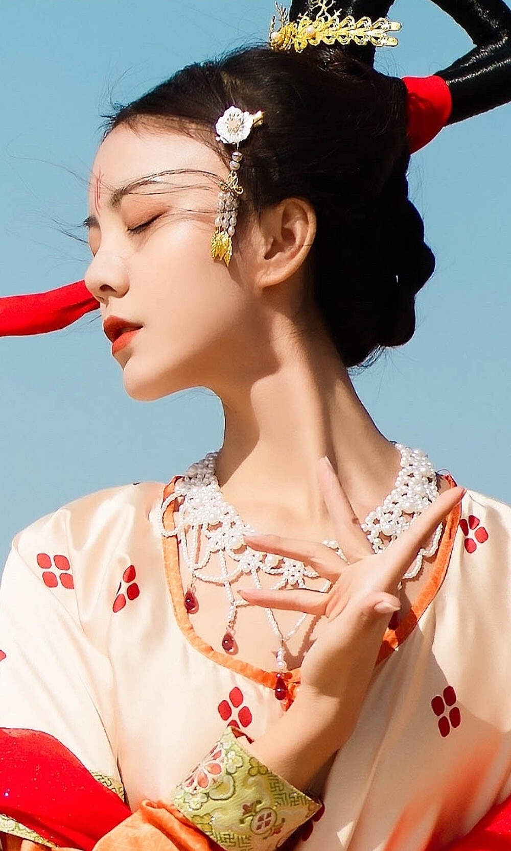 办法②:选择独特风格的汉服造型。虽然说对于大部分汉服搭配来说,变白一点确实更加容易变得好看,但是白皮肤却不是唯一的审美标准,我们同样可以选择一些适合黑黄皮的汉服造型。就像是那些带有西域风格的搭配,或者是带着一些艺术形式造型等等。
