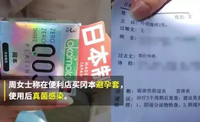 近日,家住西安的周女士因为从唐久便利店内买到一盒冈本避孕套,在使用完2个小时之后,她开始感觉不适,到了半夜情形更加严重。到医院检查之后,得出的结论是:霉菌性阴道炎。而事后当周女士把自己所购买的避孕套送检后得知,自己花费66元购买的三片装冈本避孕套竟然是假货!于是,周女士表示:因此事关乎个人健康,所以自己一定会追究到底。