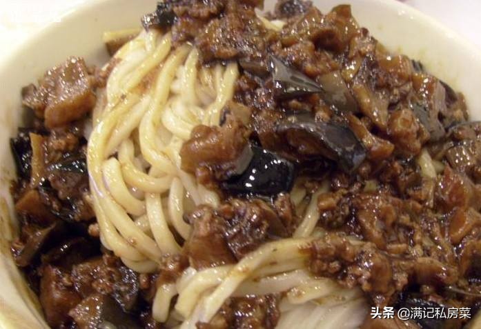 4、加入茄子和青椒,炒匀盛出,浇在面条上食用。