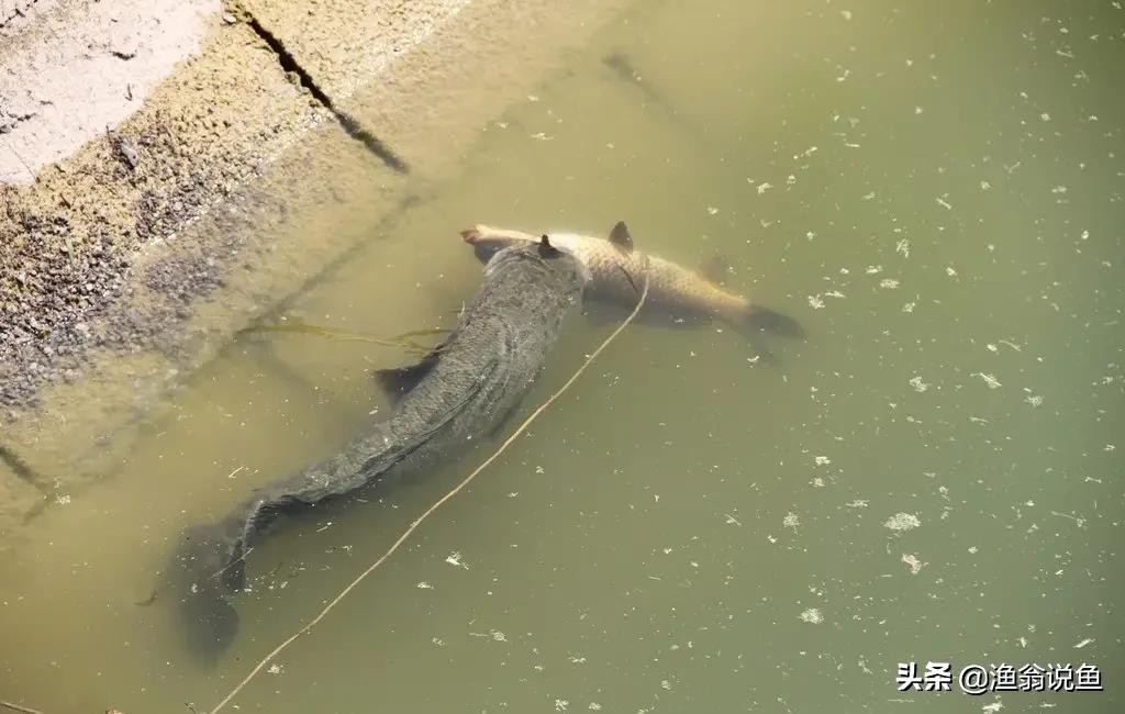 一条大黑鱼一口咬住2斤左右的鲤鱼
