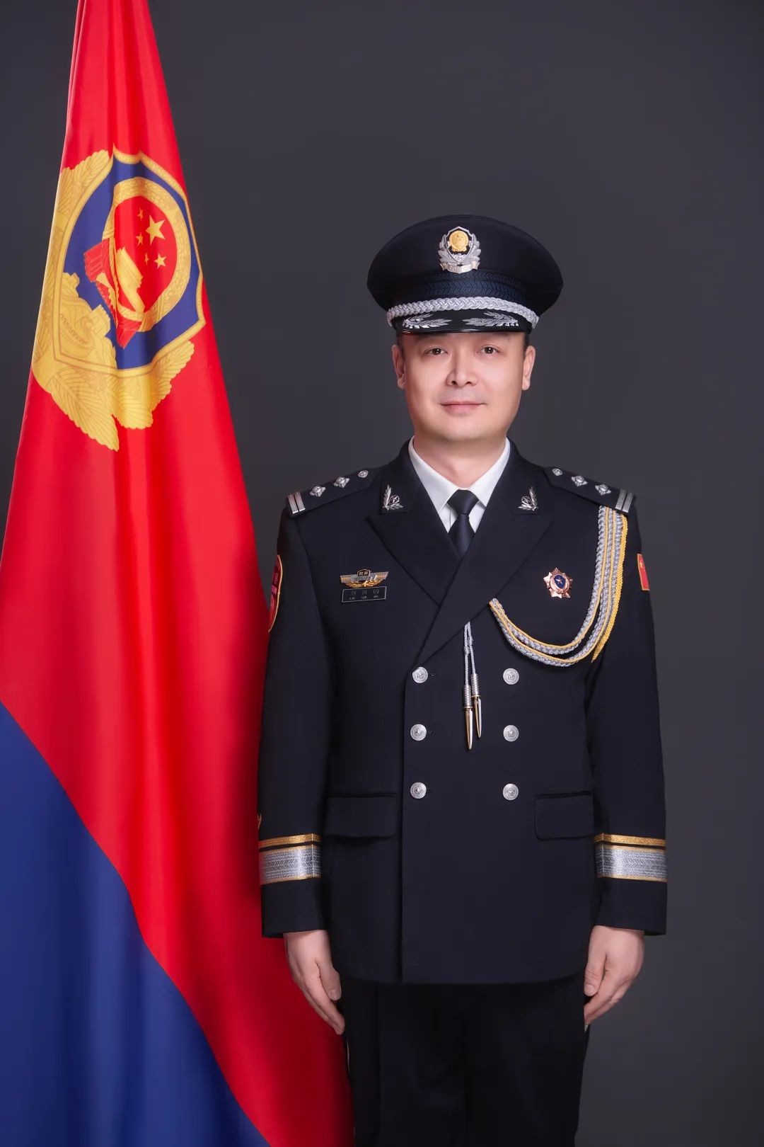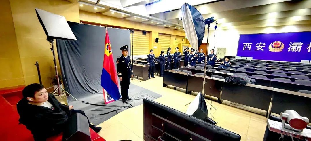 1月8日上午,公安灞桥分局二楼会议室里,同志们身着警礼服,精神抖擞,期待着与警旗合影留念。