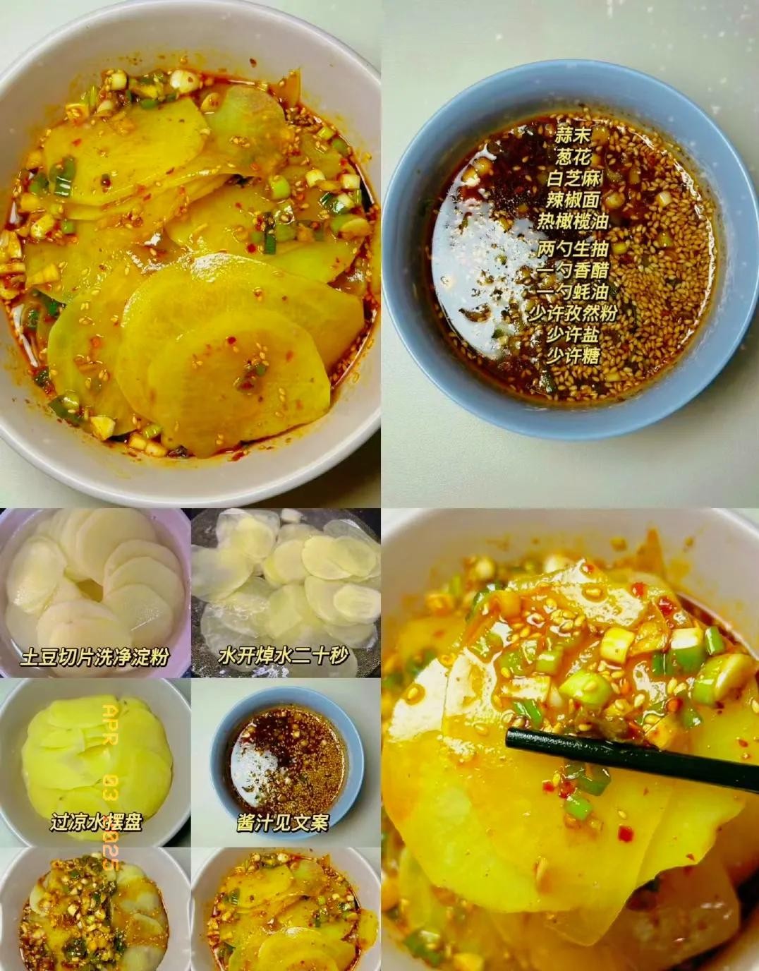 配料:土豆、蒜末、葱花、白芝麻、辣椒面、生抽蚝油、陈醋、盐、白糖、孜然粉、油(橄榄油)