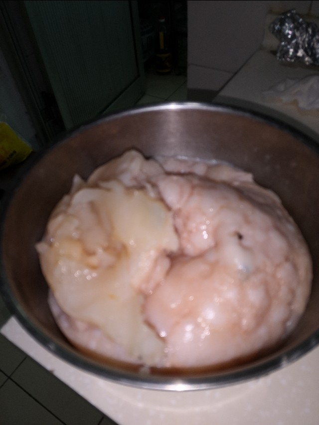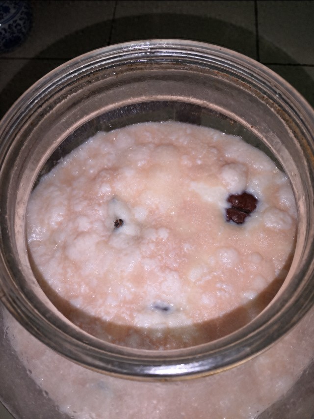 去年秋天,买了点柿子,学着做做柿子醋。没有经验,心里很木有底。后来看见上面起了一层白皮子,想着可能坏啦。上网上查了一下,有人说可能是醋蛾子,心里默默地祈祷,希望借人家的吉言,马到成功。今天准备沥醋,打开坛子,酸香刺眼扑鼻,上面涌着一层羊脂玉,手摸温润弹滑,就是传说中的醋蛾子。拽下来一块尝了尝,有醋泡海蜇的感觉,引得口舌生津,禁不住打个酸颤,忍不住想喝二两老白干儿。