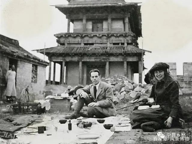 1900年,北京德胜门城楼东面城墙上。三名洋人在此野炊。