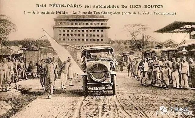 1907年,“北京——巴黎”汽车拉力赛,法国队的迪昂赛车来到德胜门外关厢(箭楼北侧)。