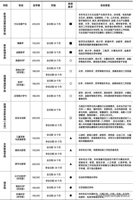 大家知道在国内读研,都需要参加研究生统一考试,但是西浦作为合作办学,是申请制!英文授课,文凭认可度高,学制短,1.5-2年就毕业,降低了费用和时间成本。奖学金多,金额大。西交利物浦大学目前已开设48个硕士专业,采用申请入学制,申请者无需参加全国研究生入学统一考试,这里也把专业贴在下面。