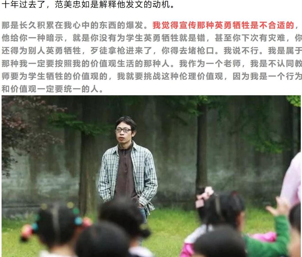人们并不知道才华横溢的范美忠在三尺讲台上讲授了什么,但人们知道,他在灾难面前学生们什么是“自私”。