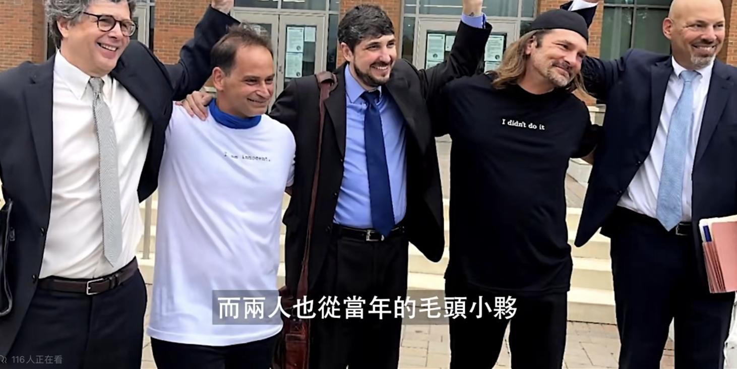 2019年7月,经过第二轮重审之后,Birch和Han分别被判无罪,当庭释放,而两人也从当年的毛头小伙变成了年过半百的大叔。重获自由走出法庭的时候,两人热泪盈眶,他们身上穿着的T恤上面分别印着我是无辜的。我并没有做。