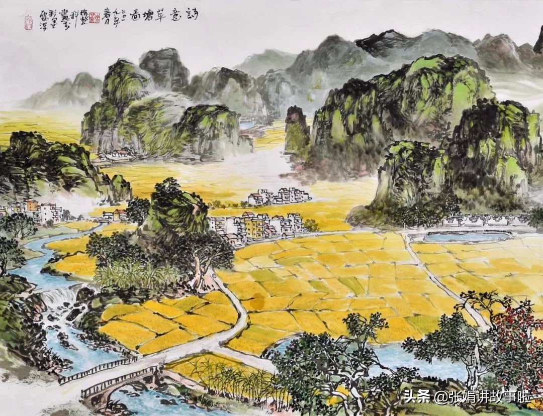 春来,绿水新涨一篙深,盈盈地涨平了水面。水边芳草如茵,鹅儿的脚丫蹒跚,鲜嫩的草色,在微风习习吹拂里,染绿了河塘堤岸。画船轻缓移动,绕着九曲水湾游转,望去,横塘高塔,在眼前很近,却又像启船时一样遥远。