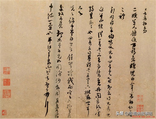 《中流一壶帖》,此作为范成大写的一则信礼,为范成大的传世书法作品之一。钤有“云烟过眼”、“项笃寿印”、“项子长父鉴定”、“蝶庵书画”、“天恙”等收藏印