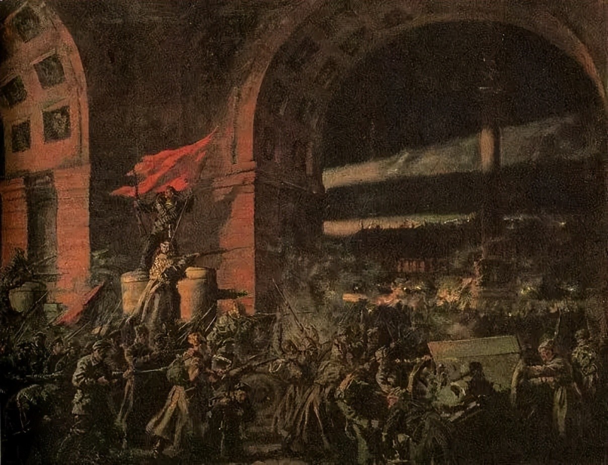 1917年11月7日,以弗拉基米尔·伊里奇·列宁为领导的布尔什维克党武装力量向资产阶级临时政府所在地圣彼得堡冬宫发起总攻,推翻了临时政府,建立了苏维埃政权。