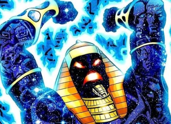 公元前十四世纪,埃及正处于阿赫那顿的统治下,17年后,阿赫那顿失踪了,在漫画中的设定是这位法老王被宇宙天神带到了容纳宇宙之心的地方,在这里,宇宙天神在法老王身上做了一个实验,天神用设备把宇宙之心的部分力量引导到了法老王的体内,这股力量让阿赫那顿从一个凡人变成了一个近乎全能的存在,但这个改造过程持续了几千年,所以法老王才会在21世纪再次出现。