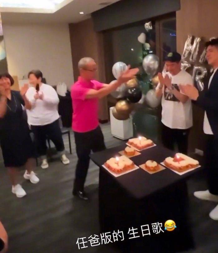 已经70岁的任爸,穿着粉色T恤,还一边对着林柏澍兴奋地唱生日歌,一边随着音乐舞动手臂。看来他对林柏澍似乎相当满意。