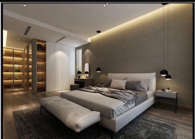 所谓轻奢,实际上是以极致简约风格为基础,摒弃一些如欧式、法式等风格的复杂元素,以更简洁的、硬朗的直线条代替,如选用平滑的门板造型,简单的墙板等没有过多的雕刻修饰,通过一些精致的软装元素来凸显质感,同时也浓缩着意想不到的功能与细节,从而彰显了一种高品质的生活方式。