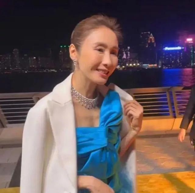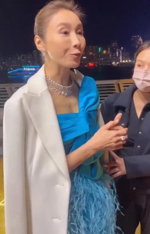 黎姿近日参加香港某活动,身穿蓝色抹胸裙,虽然化着浓妆,但是尽显老态。